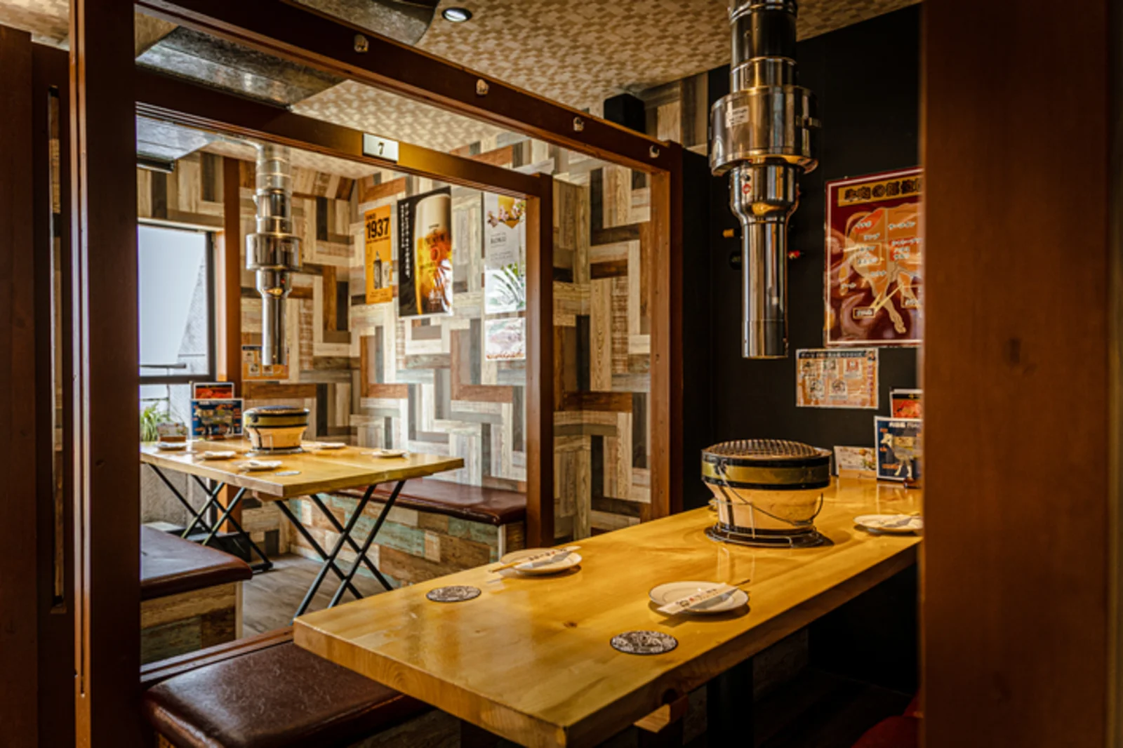 店内は落ち着きに満ちた空間。一枚板のテーブルが上質感を演出し、半個室の配慮でプライベートな時間をお約束します。七輪を囲むスタイルは親しみやすさと特別感を兼ね備え、友人・家族・ご接待まで幅広いシーンに最適。大人数や貸切にも対応でき、忘年会・新年会などの宴席でもご好評いただいています。